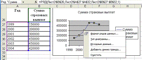 2. Установить указатель манипулятора мышь на линию графика (ряд) и вызвать контекстное меню.