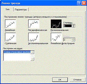 3. В контекстном меню выбрать Добавить линию тренда (см. рис.20) - откроется диалоговое окно Линия тренда (см рис.21).